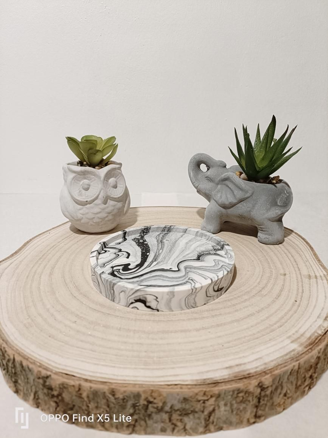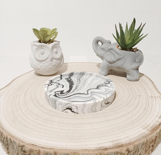 Coupelle en Jesmonite pour poser vos bougies moulées, ne comportant pas de contenant.