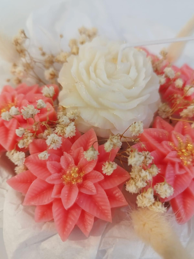 Composition : 6 fondants parfumés fleur de Noël et 1 bougie pivoine.